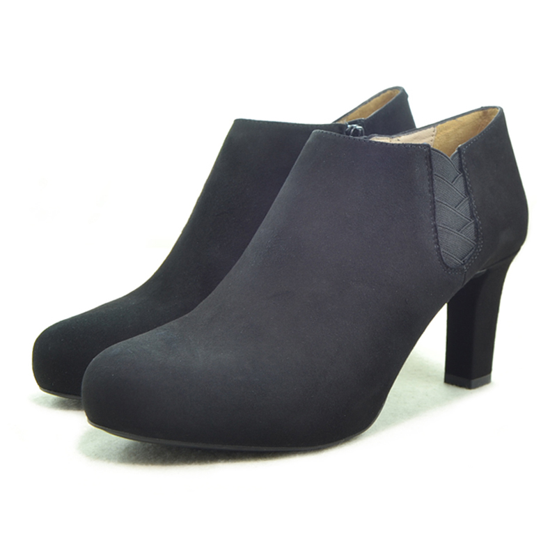 Botines de tacón de 7,5 cm. Fabricados en piel ante negro.